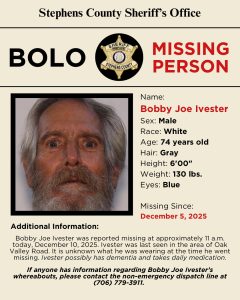 The Stephens County Sheriff’s Office – Georgia is asking for the community’s help locating a missing person, says Rebekah Smith, Public Information Officer for the Stephens County Sheriff’s Office.